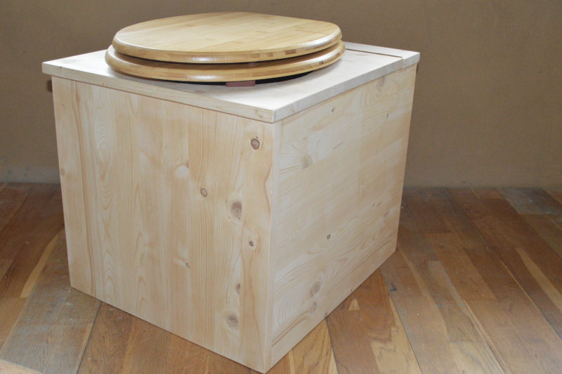 Afmetingen 45 x 44 x 54 cm (b x h x l). Inclusief gemodificeerde toiletbril naar keuze en twee plastic emmers met deksel. Op bestelling leverbaar in meerdere kleuren en materialen: multiplex, mdf en vuren paneelhout.